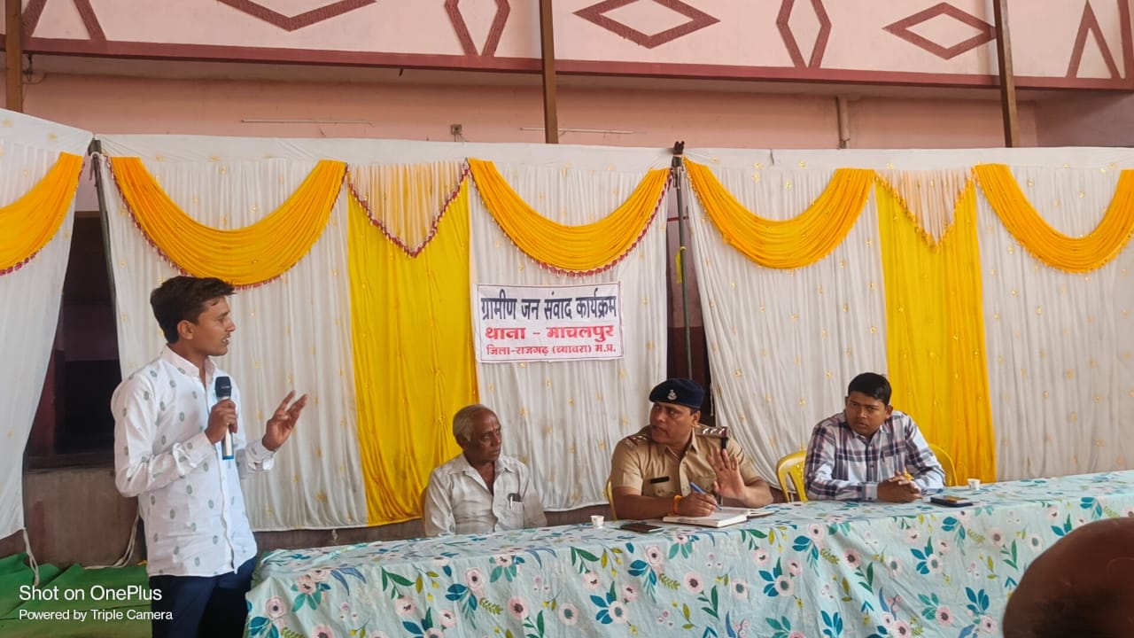 माचलपुर:- मुख्यमंत्री मध्य प्रदेश शासन भोपाल के द्वारा संपूर्ण मध्य प्रदेश पुलिस थानों में गणमान्य नागरिकों के साथ समय-समय पर जन संवाद किए जाने हैतू निर्देशित किया गया है इसी तारतम्य मैं पुलिस माचलपुर द्वारा दिनाँक 3/3/2024 रविवार को स्थानीय अग्रवाल धर्मशाला मैं पुलिस जन संवाद आयोजित जन संवाद कार्यक्रम में नायब तहसीलदार रामनिवास धाकड़, थाना प्रभारी अखिलेश वर्मा सहित थाना क्षेत्र के गणमान्य नागरिक व्यापारी बंधु किसान बंधु जन प्रतिनिधिगण एवं इलेक्ट्रॉनिक व प्रिंट मीडिया के पत्रकारगण उपस्थित रहे।