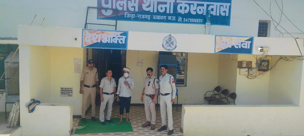 निर्देशन के फलस्वरुप अति पुलिस अधीक्षक आलोक शर्मा तथा एसडीओपी व्यावरा श्रीमति नेहा गौर के मार्गदर्शन मे आज दिनांक 23.04.2024 को करनवास पुलिस को मुखबिर द्वारा सूचना प्राप्त हुई कि एक व्यक्ति हनुमान मन्दिर के पास ग्राम ओड़पुर मे अवैध रूप से देशी कट्टा शस्त्र लिये खडा है जिसकी तस्दीक हेतु हमराह फोर्स प्रआर.387 रमेश प्रआर.308 कैलाश यादव आर. 839 सुनील आर. 704 रमेश को भी उक्त सूचना से अवगत कराया बाद सूचना की तस्दीक हेतु मुखबीर द्वारा बताये स्थान हनुमान मन्दिर के पास ग्राम ओड़पुर पहुंचे तो देखा कि मुखबीर द्वारा बताये गये हुलिये का व्यक्ति पुलिस को आता देख भागने लगा जिसके दाहिने हाथ मे लोहे का देशी कट्टा जैसा दिख रहा था जिसे हमराह फोर्स की मदद से घेराबंदी कर पकडा जिसके हाथ से लोहे का कट्टा लेकर देखा तो एक 12 बोर का देशी कट्टा जिसके दाहिने तरफ एक सेफ्टी पिन लगी होकर स्क्रू जैसी कील ठुकी है चार लोहे की रिपीट ठुकी है मुट के दोनों तरफ लकड़ी की पट्टी लोहे की कील से ठुकी है कीमती 6000 रुपये एवं कट्टे के चेम्बर मे देखा तो उसमे एक जिन्दा कारतूस लाल रंग का मिला जिस पर काले रंग से अंग्रेजी मे शक्तिमान अंकित है कारतूस का पेंदा स्टील का होकर पेन्दे पर अंग्रेजी मे SHAKTIMAN 12 EXPRESS 12 अंकित है कारतूस की कीमती 200 रुपये है कुल कीमती 6200 रुपये होना पाया गया।