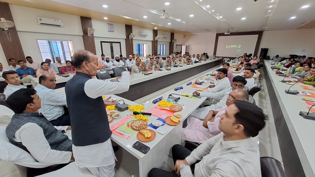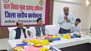 राजगढ 13 नवम्बर, 2024 राजगढ जिले को बाल विवाह मुक्त बनाने एवं नातरा झगडा कुप्रथा को समाज से खत्म करने क उददेश्य से बुधवार को जनप्रतिनिधियों, धर्मगुरूओं, सामाजिक संगठनों के प्रतिनिधियों, पुलिस अधिकारियों, टेंट एवं डी.जे. व्यवसायियों की कार्यशाला आयोजित की गई। कार्यशाला में सभी ने एक स्वर में इन कुप्रथाओं को दूर करने में अपना सहयोग प्रदान करने का संकल्प लिया। कार्यशाला में जिला पंचायत अध्यक्ष श्री चंदर सिंह सौंधिया, विधायक खिलचीपुर श्री हजारीलाल दांगी, कलेक्टर डॉ. गिरीश कुमार मिश्रा, पुलिस अधीक्षक श्री आदित्य मिश्रा, मुख्य कार्यपालन अधिकारी जिला पंचायत श्री महीप किशोर तेजस्वी सहित अन्य पदाधिकारी मौजूद थे।