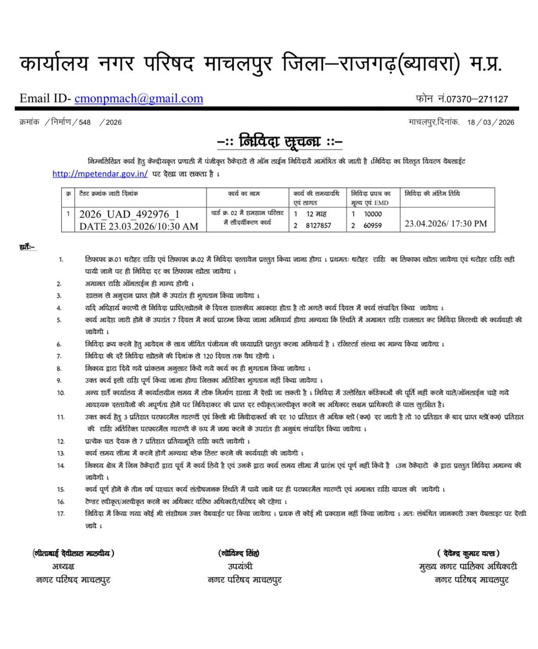 📍माचलपुर में विकास की बड़ी सौगात: 81 लाख से बदलेगा शमशान का स्वरूप, नगर परिषद ने जारी किया ई-टेंडर”