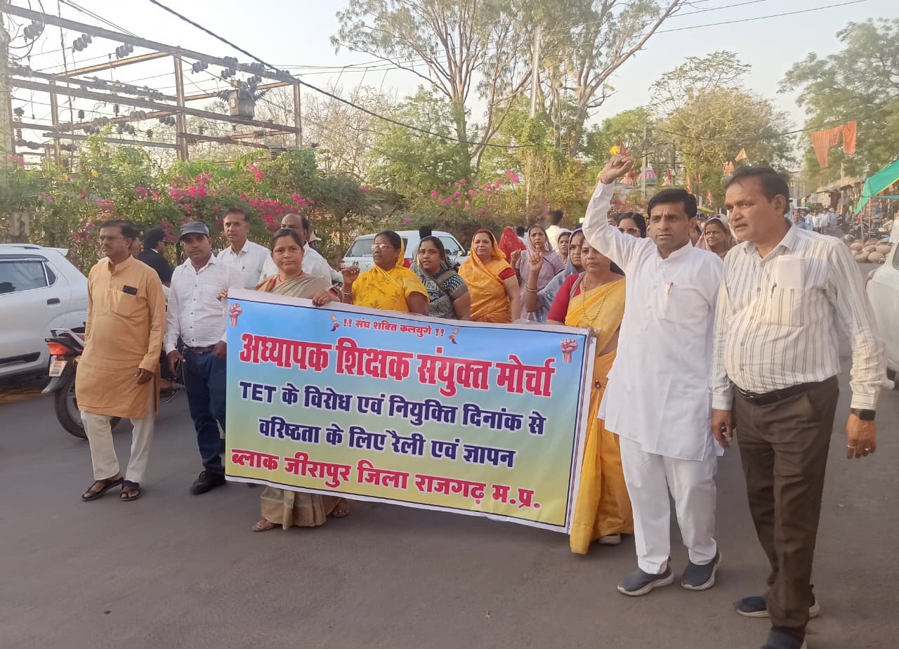 рдЬреАрд░рд╛рдкреБрд░ред рдкреНрд░рджреЗрд╢рднрд░ рдореЗрдВ рдЪрд▓ рд░рд╣реЗ рд╢рд┐рдХреНрд╖рдХ рдЖрдВрджреЛрд▓рди рдХреЗ рдмреАрдЪ рдЖрдЬ рдЬреАрд░рд╛рдкреБрд░ рдореЗрдВ рдЕрдзреНрдпрд╛рдкрдХ рд╕рдВрдпреБрдХреНрдд рдореЛрд░реНрдЪрд╛ рдиреЗ рдЕрдкрдиреА рддрд╛рдХрдд рдХрд╛ рдЬрдмрд░рджрд╕реНрдд рдкреНрд░рджрд░реНрд╢рди рдХрд┐рдпрд╛ред рдЕрдкрдиреА рд▓рдВрдмрд┐рдд рдорд╛рдВрдЧреЛрдВ рдФрд░ рдЕрдзрд┐рдХрд╛рд░реЛрдВ рдХреЛ рд▓реЗрдХрд░ рд╢рд┐рдХреНрд╖рдХ-рд╢рд┐рдХреНрд╖рд┐рдХрд╛рдПрдВ рдмрдбрд╝реА рд╕рдВрдЦреНрдпрд╛ рдореЗрдВ рд╕рдбрд╝рдХреЛрдВ рдкрд░ рдЙрддрд░реЗ рдФрд░ рдПрдХрдЬреБрдЯрддрд╛ рдХрд╛ рдРрд╕рд╛ рдирдЬрд╛рд░рд╛ рдкреЗрд╢ рдХрд┐рдпрд╛, рдЬрд┐рд╕рдиреЗ рдкреВрд░реЗ рд╢рд╣рд░ рдХрд╛ рдзреНрдпрд╛рди рдЕрдкрдиреА рдУрд░ рдЦреАрдВрдЪ рд▓рд┐рдпрд╛ред